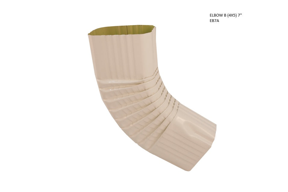 A B-shaped elbow is a type of gutter elbow that directs water away from the foundation of a building. A B-shaped elbow is taller than it is wide and directs water at a right angle. The choice between A-shaped and B-shaped elbows depends on the needs of the gutter system, the angle of the redirection, and the position of the downspout. This product is available in sizes: (2x3)5'', (3x4)6'', (4x5)7''. It is also available in multiple colors and materials.